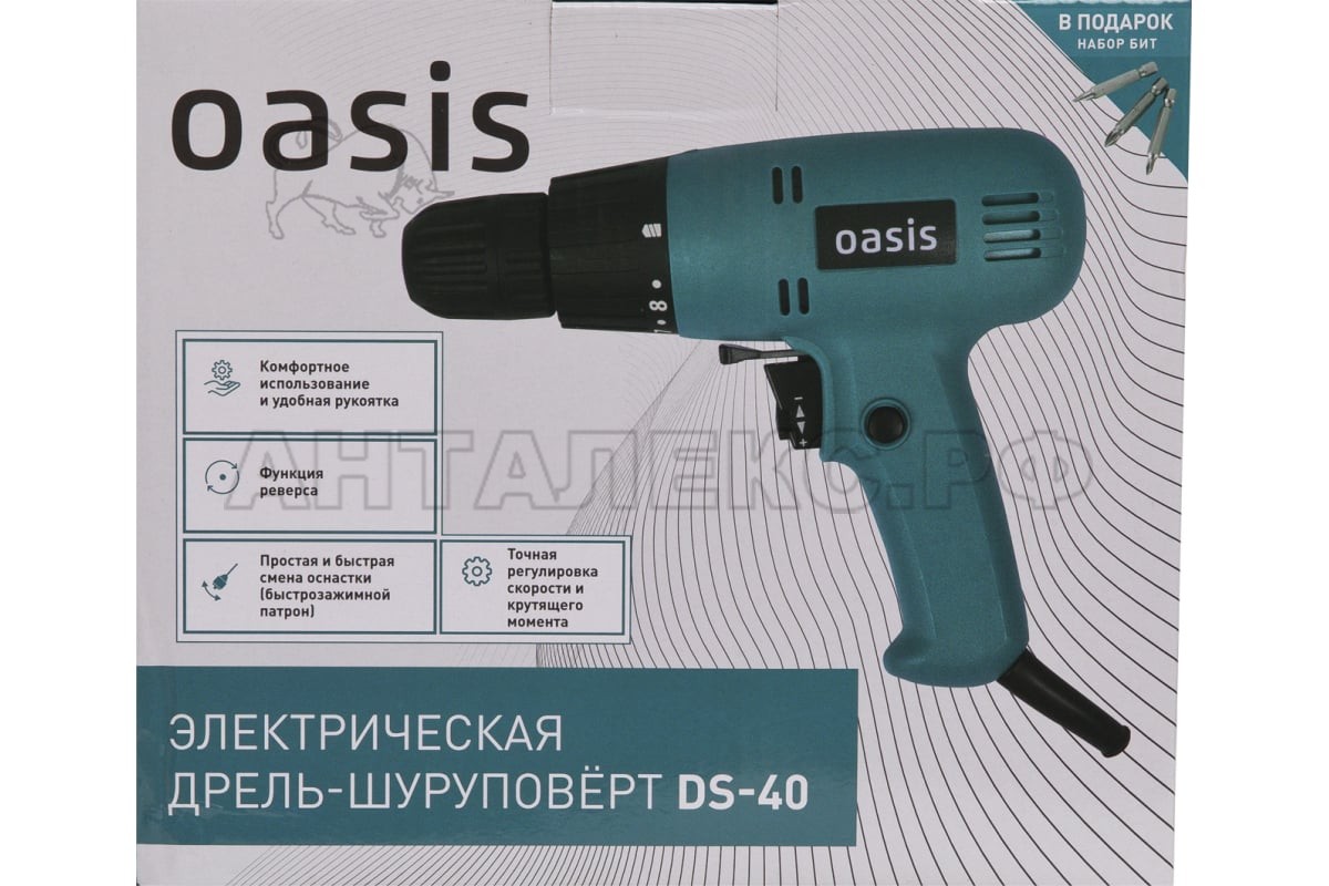 В интернет-магазине Анталекс.рф вы можете купить сетевую дрель-шуруповерт Oasis DS-40 Р0000012162 оптом и в розницу с доставкой по всей территории РФ. Шуруповерт предназначен для закручивания и откручивания шурупов и саморезов, а также сверления отверстий в дереве, керамической плитке, пластмассе, гипсокартоне, металле и других материалах.