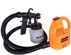 Краскопульт электрический компрессорного типа мощностью 400 Вт с диаметром сопла 1,8 и 2,6 мм, предназначен для распыления эмалевых и водоэмульсионных красок, грунтовок, прозрачных лаков, морилок, средств защиты древесины, масел, дезинфицирующих средств на основе растворителей и воды.