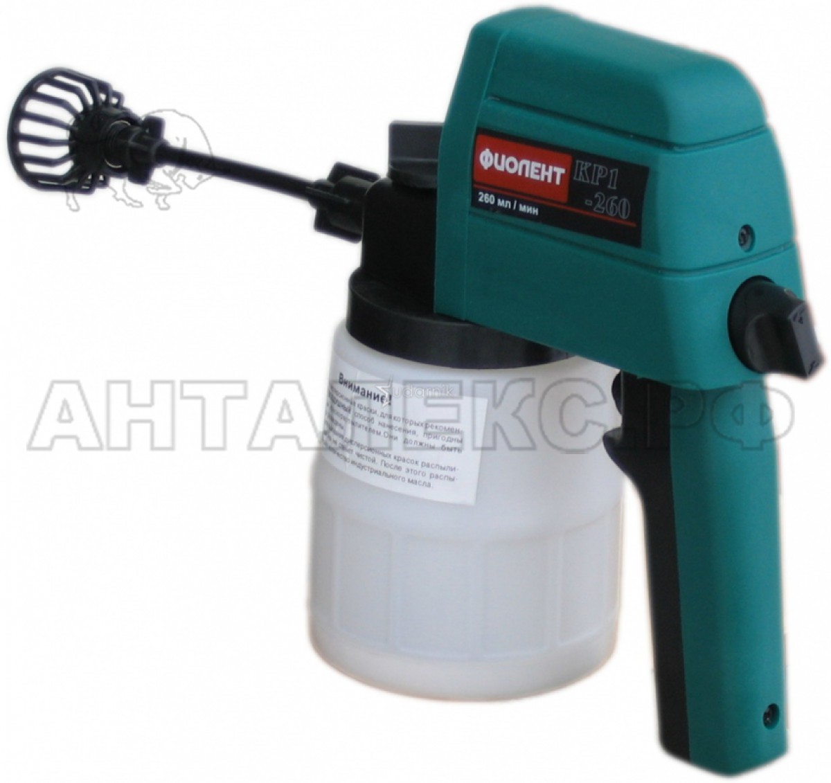Краскораспылитель Фиолент КР1-260 может быть использован, как для работ в помещениях, так и, например, в саду. Важными особенностями инструмента являются фильтр для краски, который предусмотрен конструкцией, измеритель вязкости, входящий в комплект поставки, а также плавная регулировка количества распыляемой краски. Привод насоса краскораспылителя Фиолент КР1-260 представляет собой надежный электромагнитный вибратор.