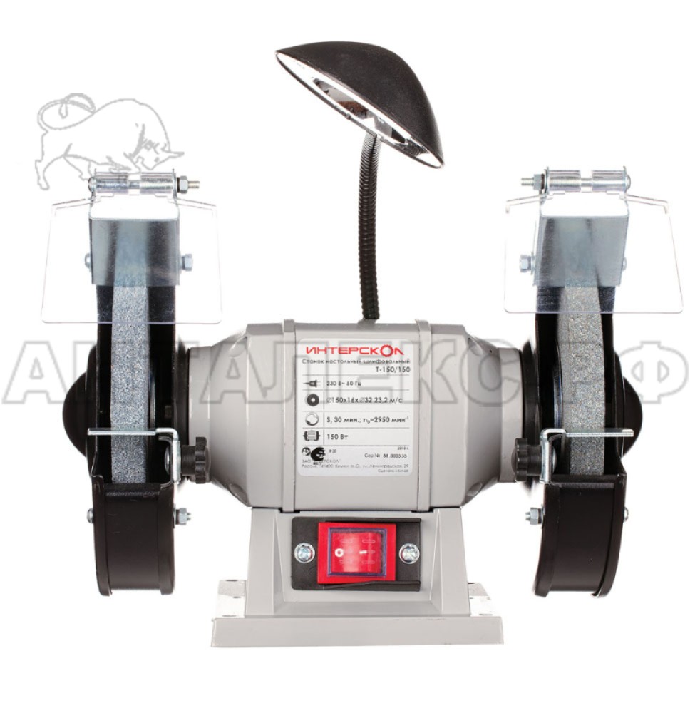 В интернет-магазине Анталекс.рф вы можете купить электроточило Интерскол Т-150/150 оптом и в розницу с доставкой по всей территории РФ. Точило Интерскол Т-150/150 предназначено для заточки режущих элементов металлообрабатывающих станков, а также для затачивания металлического инструмента с режущими поверхностями - топоров и ножей. Инструмент монтируется на рабочей поверхности или верстаке при помощи болтов - для лучшей устойчивости при работе. Электродвигатель точила мощностью 150 Вт вращает шлифовальные круги диаметром 150 мм, насаженные на вал двигателя, с частотой 2950 об/мин и работает от бытовой электросети 220 В.