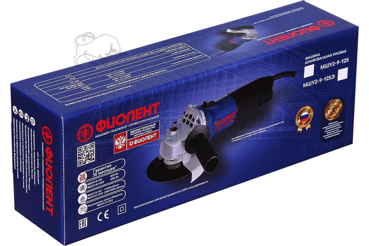 Редуктор УШМ Фиолент МШУ2-9-125Э выполнен из алюминия, что позволяет защитить инструмент от механических повреждений, засорения, а также способствует лучшему охлаждению. Его корпус поворотный на 90º. Кнопка включения УШМ Фиолент МШУ2-9-125Э имеет возможность фиксации кнопки включения, что обеспечит возможность длительной работы. Щетки УШМ Фиолент МШУ2-9-125Э настроены на автоматическое отключение в случае их износа. Также привод УШМ Фиолент МШУ2-9-125Э имеет двойную изоляцию.