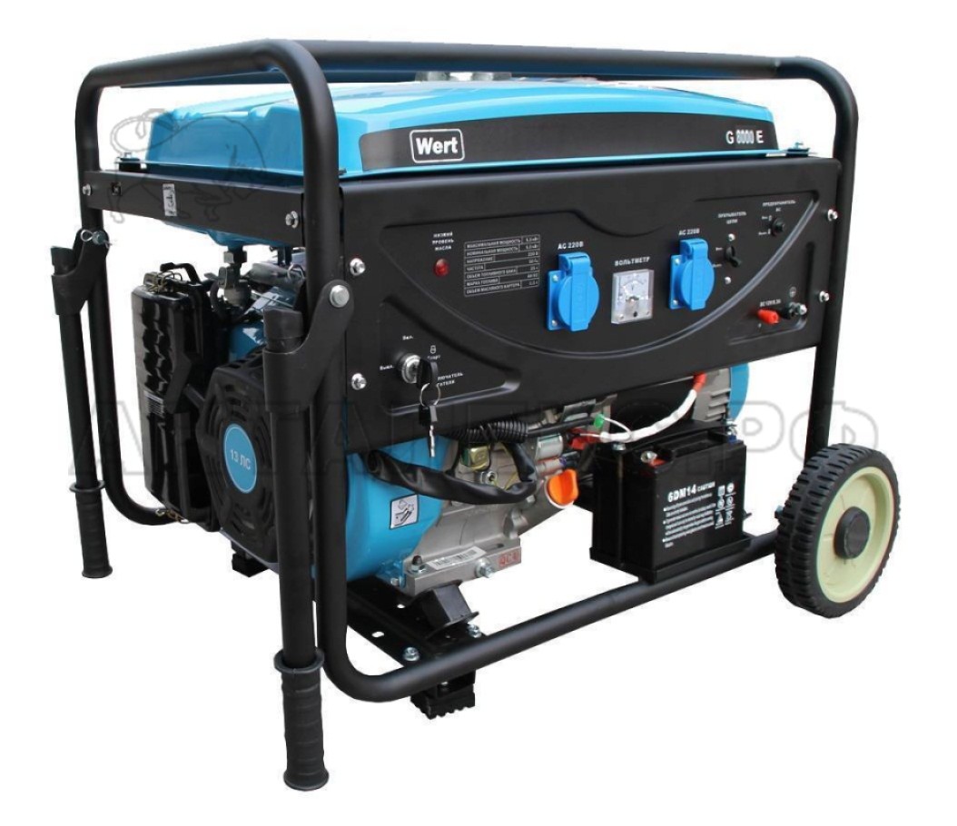 Бензогенератор WERT (Верт) G 8000E (бензиновая электростанция) резервная электростанция способна обеспечить однофазных потребителей электроэнергии напряжением 220В на время отключения основного (сетевого) питания. Станция способна работать как в интенсивном режиме, так и использоваться при необходимости. Оптимально подходит как для профессионального, так и для бытового применения.