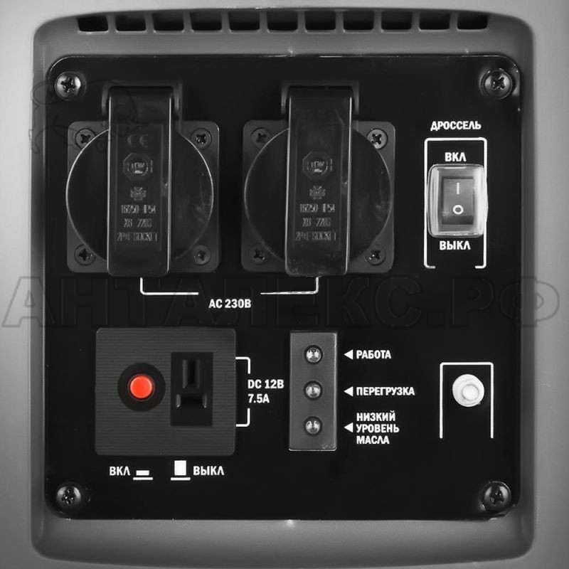 Бензогенератор Elitech БИГ 2000 прост в эксплуатации, оснащен панелью управления с двумя розетками 220В переменного тока 16А, автоматическим выключателем генератора и индикатором нормальной работы генератора, индикатором перегрузки генератора, индикатором низкого уровня масла генератора, защитой розеток от влаги и пыли, а также розеткой с выходом постоянного тока 12В на ток 8,3А. Данная розетка пригодна для подзарядки соответствующих аккумуляторов, и питания маломощного электроинструмента.