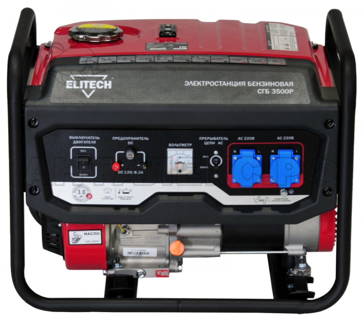 Для визуального контроля над работой бензогенератора Elitech СГБ 3500 Р на его панель управления имеется вольтметр.
