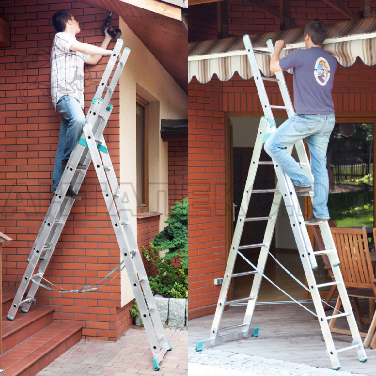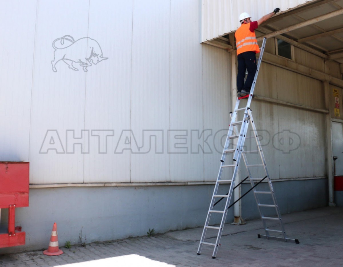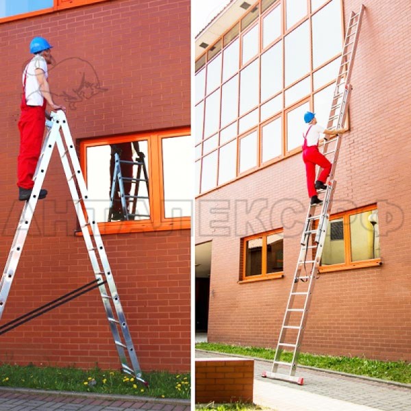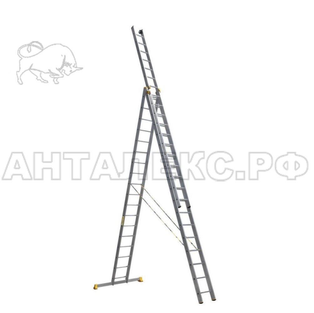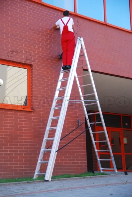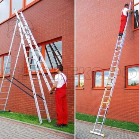 В интернет-магазине Анталекс.рф вы можете купить лестницу-стремянку из алюминия, состоящую из 3 секций по 18 ступеней, вес 31.6 кг, рабочая высота 15.27 м, оптом и в розницу с доставкой по всей территории РФ. Трёхсекционные лестницы удобны в эксплуатации (могут использоваться как лестница и как стремянка), транспортировки и хранении, так как изделие занимаем мало место в сложенном состоянии. Данный инструмент можно смело использовать для решения большого спектра задач на производстве, сельском хозяйстве и в индивидуальном строительстве.