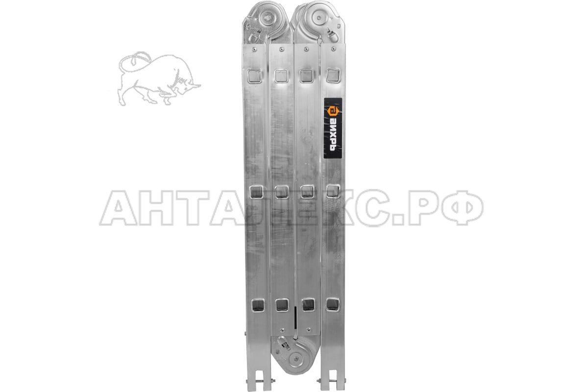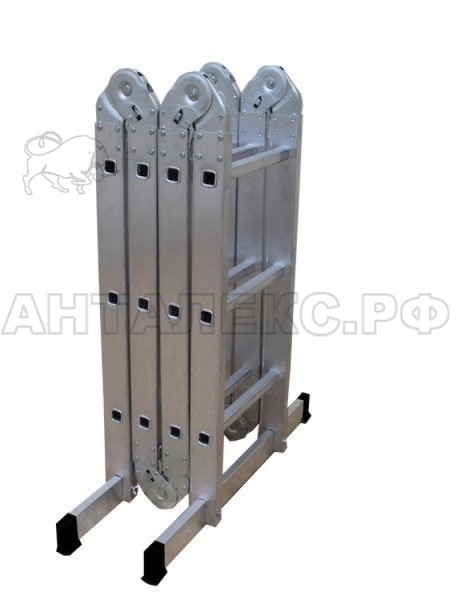 В интернет-магазине Анталекс.рф вы можете купить лестницу шарнирную ЛТА 4х3 Вихрь 73/5/1/14, 4 секции по 3 ступени, вес 10.62 кг, рабочая высота 4.8 м, высота помоста 0.92 метра, оптом и в розницу с доставкой по всей территории РФ. Лестница-трансформер устойчиво стоит на земле благодаря широким поперечным траверсам. Сочетает в себе несколько функций. Может использоваться как стремянка, как помост, как приставная односекционная или как приставная согнутая лестница.