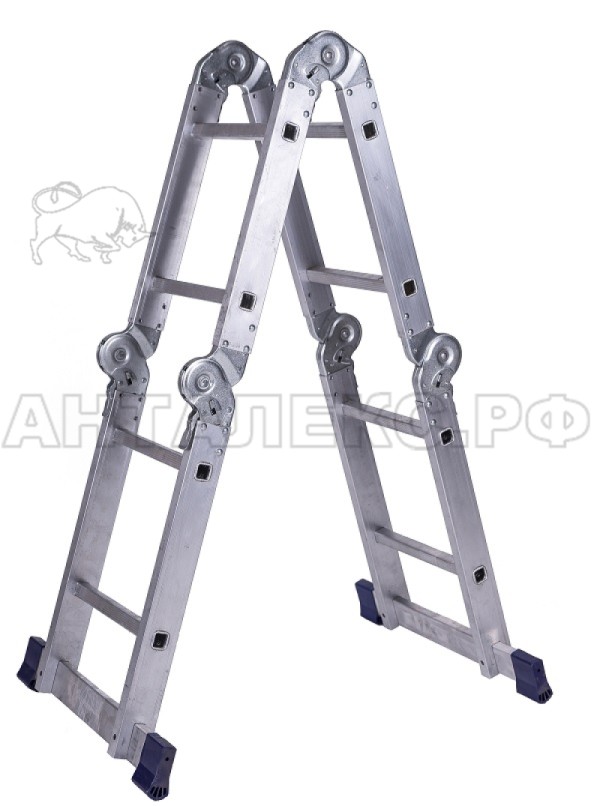В интернет-магазине Анталекс.рф вы можете купить лестницу ATR42 STAIRS на шарнирах (трансформер), 4 секции по 2 ступени, вес 10.9 кг, рабочая высота 4.8 м, высота помоста 0.65 метра, оптом и в розницу с доставкой по всей территории РФ. Лестница-трансформер устойчиво стоит на земле благодаря широким поперечным траверсам. Сочетает в себе несколько функций. Может использоваться как стремянка, как помост, как приставная односекционная или как приставная согнутая лестница.