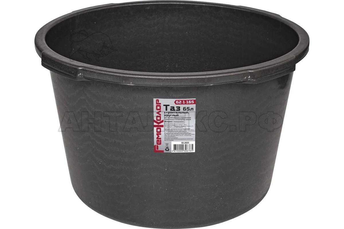 Круглый строительный таз объёмом 65 литров предназначен для использования в строительстве и хозяйстве.
