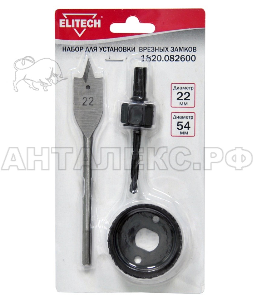 В интернет-магазине Анталекс.рф вы можете купить набор для установки врезных замков Elitech 1820.082600 оптом и в розницу с доставкой в любой регион РФ. В набор входит необходимая оснастка для установки врезных замков (коронка диаметром 54 мм, направляющее сверло, перовое сверло диаметром 22 мм).