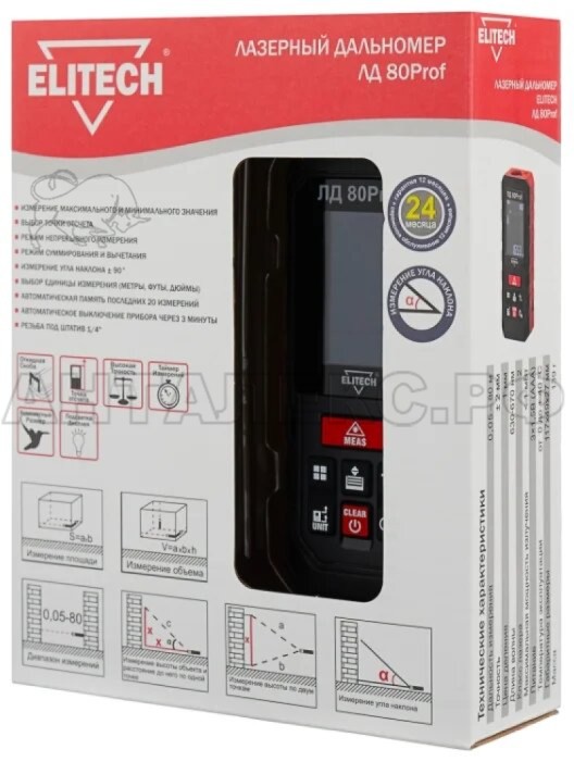 • Лазерный дальномер Elitech ЛД 80 Prof;
