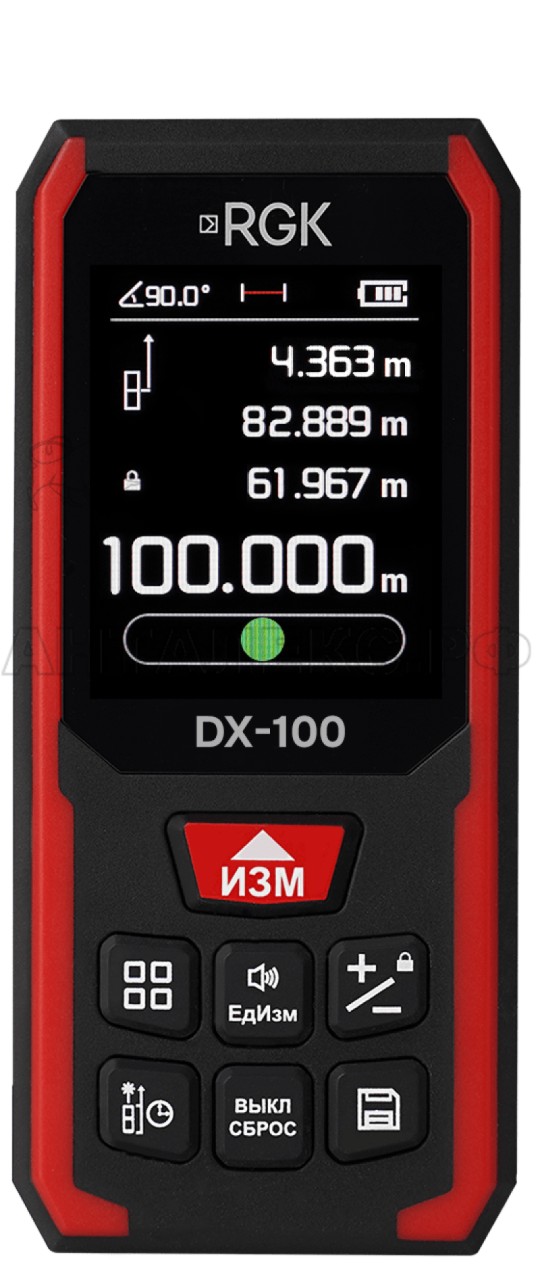Лазерный дальномер RGK DX100 – комбинированный многофункциональный инструмент с 10 рабочими режимами, обеспечивающий измерения расстояний в диапазоне до 100 м, определение величины углов с помощью встроенного инклинометра и вычисление других параметров: площадей, объемов, недоступных размеров и т.д. Изделие с аккумуляторным питанием выполнено в прочном компактном корпусе с категорией пыле- и влагозащиты IP54, и оборудовано 2-дюймовым IPS-дисплеем с инверсным изображением, обладающим высокой наглядностью.