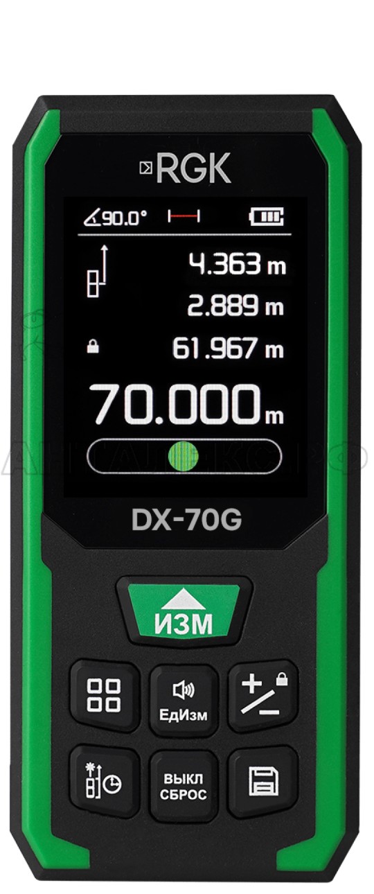 Лазерный дальномер RGK DX70G относится к компактным измерительным приборам строительного назначения, которые применяются для определения линейных размеров и расстояний, и угловых измерений, с расчетом дополнительных параметров.