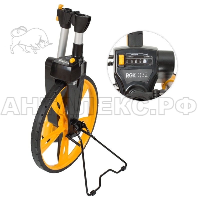 Курвиметр RGK Q32 состоит из колеса диаметром 320 мм и удобной рукоятки для управления прибором. Измерительное колесо от фирмы RGK отличает простота управления и долгий срок службы инструмента. Механический счетчик колеса обеспечивает простоту и скорость выполнения замеров. Складывающаяся подножка удерживает колесо в вертикальном положении, что пригодится при записи промежуточных результатов.