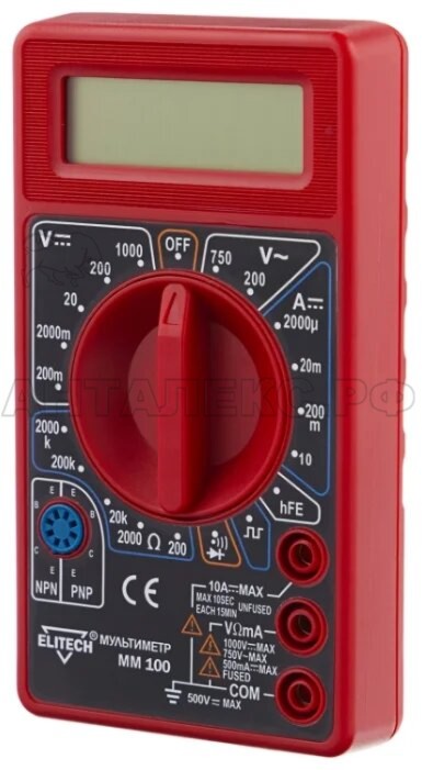 В интернет-магазине Анталекс.рф вы можете купить мультиметр Elitech ММ 100 оптом и в розницу с доставкой по всей территории РФ. Прибор можно использовать для проверки на разрыв электрических цепей, получения информации о силе и напряжения тока, также можно проверять диоды и другие детали электронных схем.