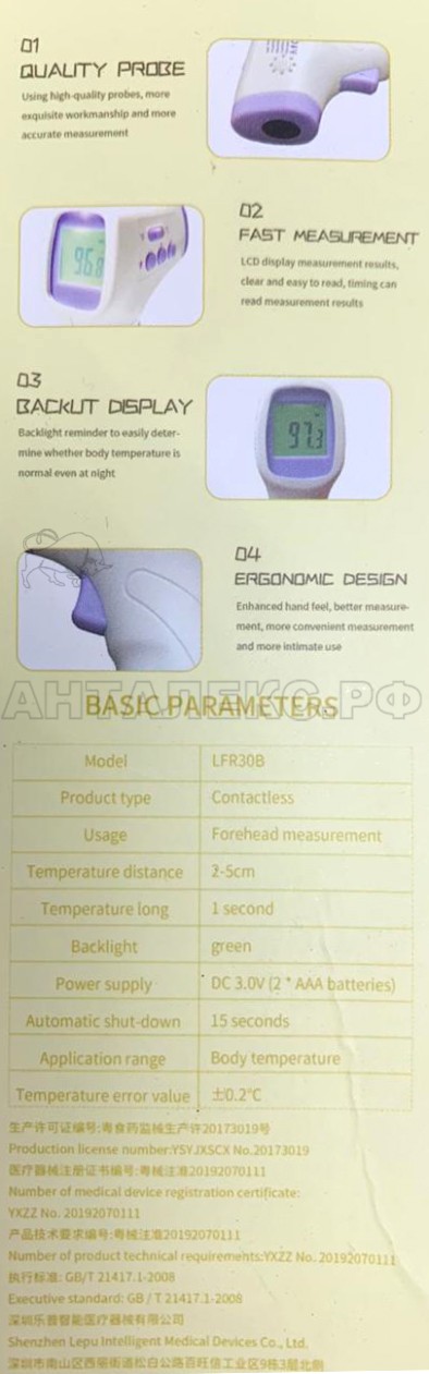 В интернет-магазине Анталекс.рф вы можете купить пирометр ИК LEPU LFR 30B для измерения температуры тела, оптом и в розницу с доставкой по всей территории РФ. Инструмент используется для дистанционного замера температуры тела.