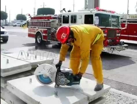 • На бензорезе имеется специальный предохранительный рычаг, защищающий от случайного пуска.
