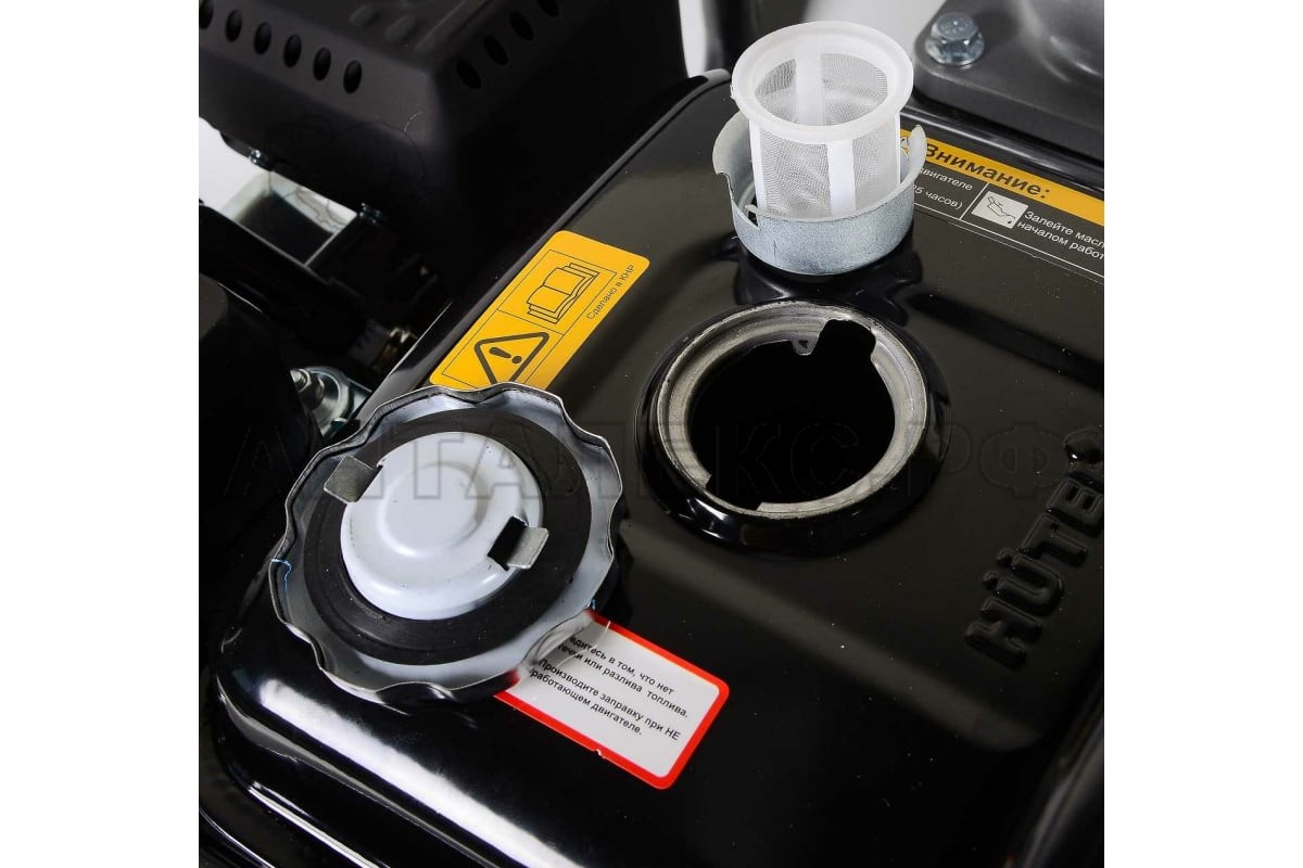 Ручной стартер позволяет завести двигатель при любых условиях. Широкое основание позволит установить мотопомпу на рыхлой поверхности, а стальная трубчатая рама защитит ее от ударов и повреждений.