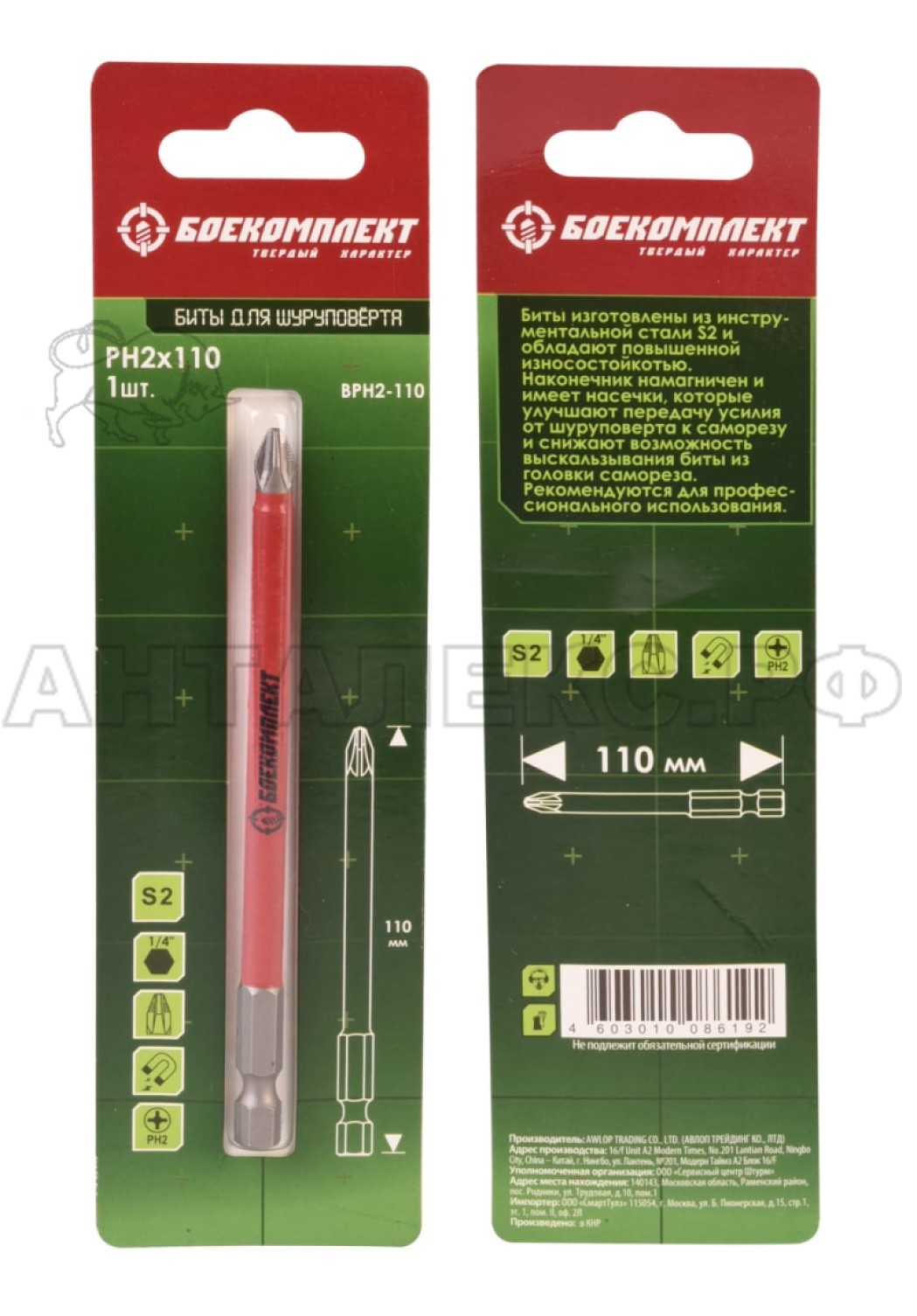 В интернет-магазине Анталекс.рф вы можете купить биту БОЕКОМПЛЕКТ BPH2-110 PH2x110 мм оптом и в розницу.
