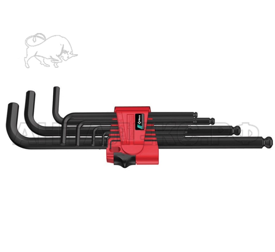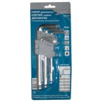 Набор содержит 9 ключей разного размера: 1 x 1,5x90; 1 x 2,0x100; 1 x 2,5x112; 1 x 3,0x126; 1 x 4,0x140; 1 x 5,0x160; 1 x 6,0x180; 1 x 8,0x200; 1 x 10,0x219.