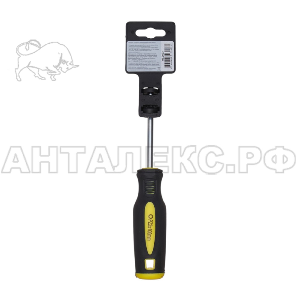 Отвёртка имеет рабочую зону с крестообразным шлицом. Используется для закручивания и откручивания винтов, шурупов и саморезов. Специальная двухкомпонентная рукоятка имеет покрытие, которое не скользит при работе голой рукой или в перчатках. Стержень изделия выполнен из стали, что обеспечивает его долговечность.