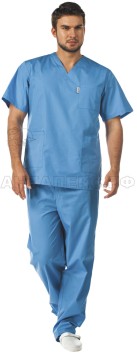 Одежда для медицинских сотрудников изготавливается из ткани Сатори (50% полиэфир и 50% хлопок), Тиси (65% полиэфир и 35% хлопок) и Бязь (100% хлопок).