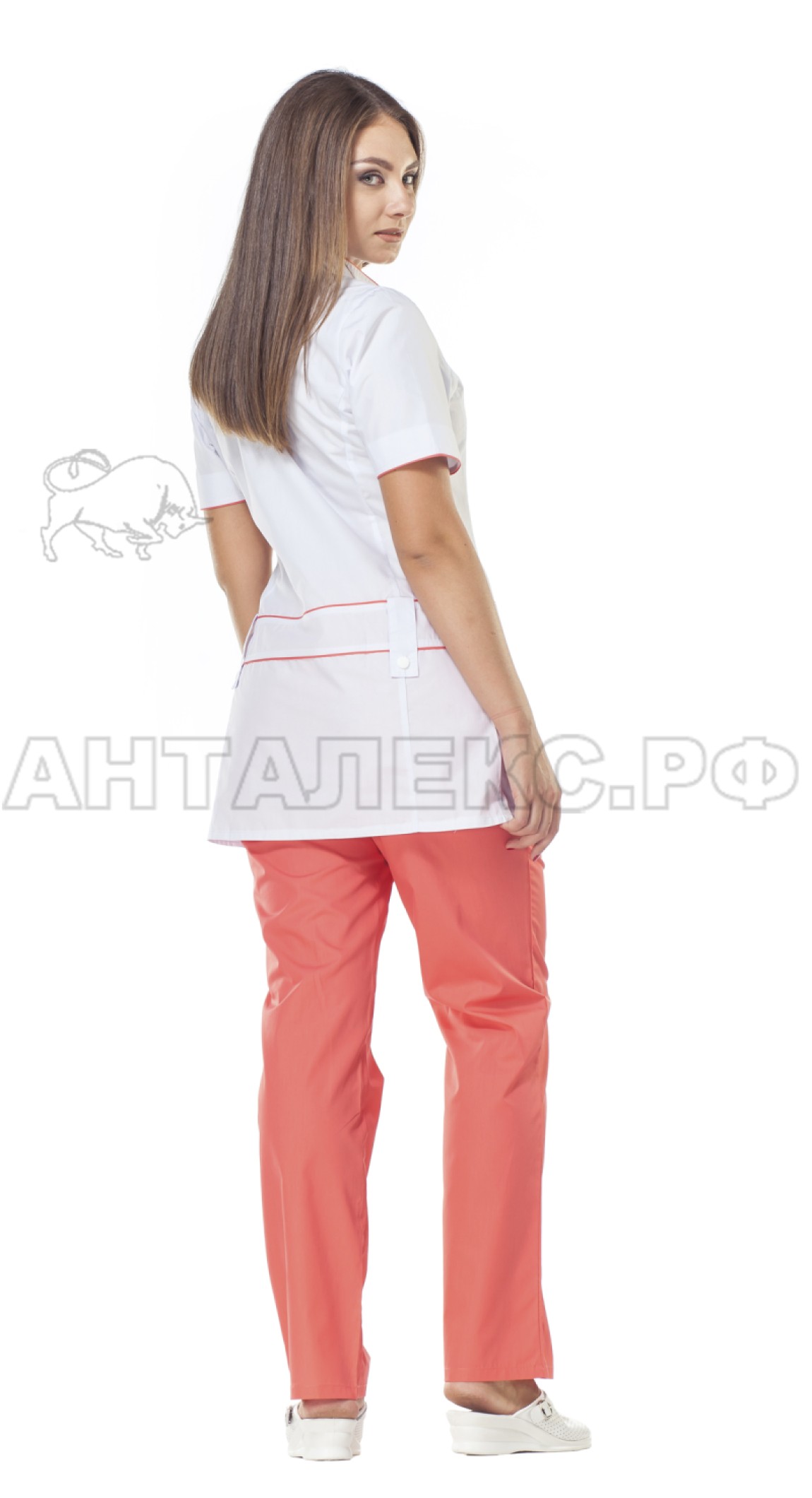 Костюм №67.1 женский белый с коралловым состоит из блузы прямого силуэта и брюк - 1 шт.