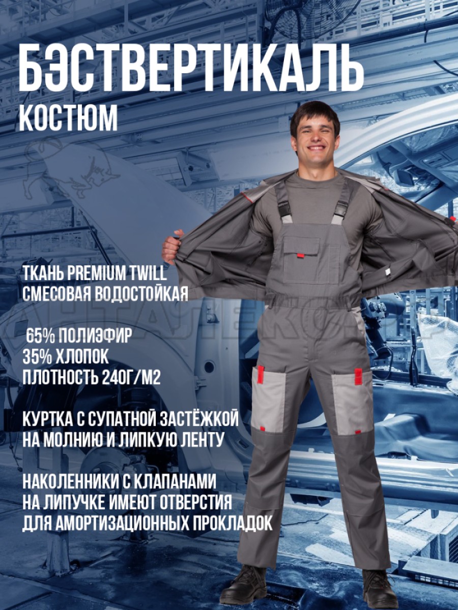 В интернет-магазине Анталекс.рф вы можете купить костюм "Анталекс-Бэствертикаль" серый с полукомбинезоном оптом и в розницу с доставкой по всей территории РФ. Лучший выбор для отделочных работ.