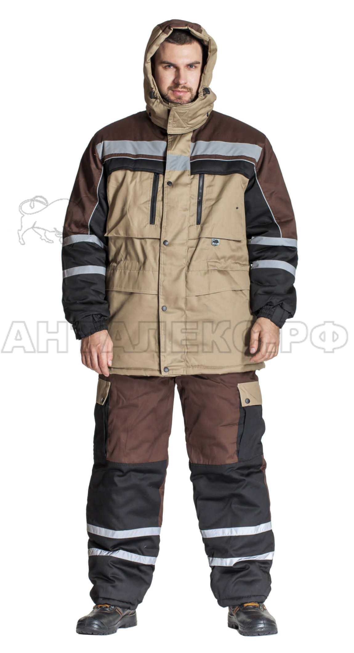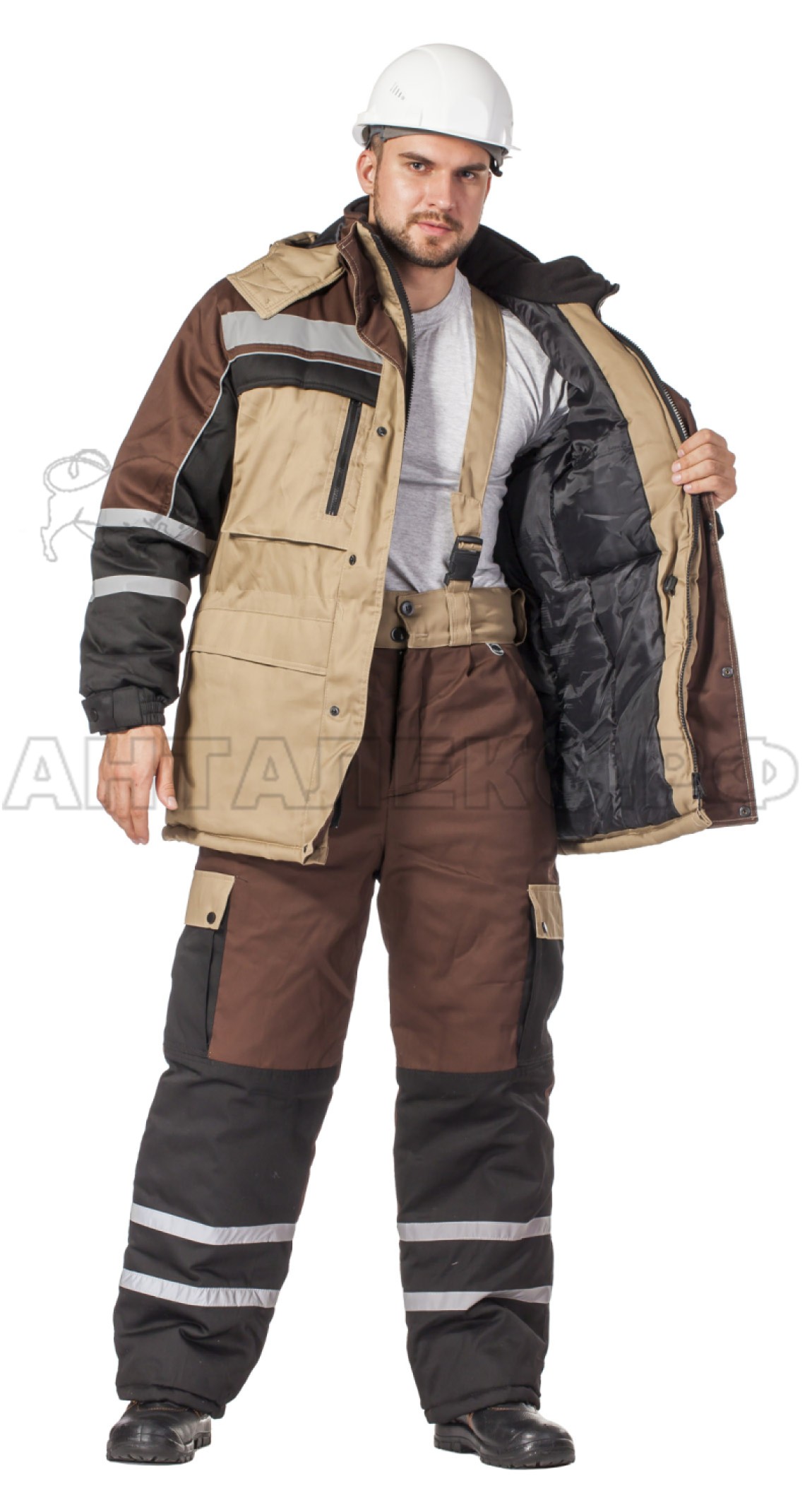 В интернет-магазине АНТАЛЕКС.РФ вы можете купить утепленный костюм "Универсал" коричневый с полукомбинезоном по самым низким ценам в регионе, как оптом, так и в розницу.