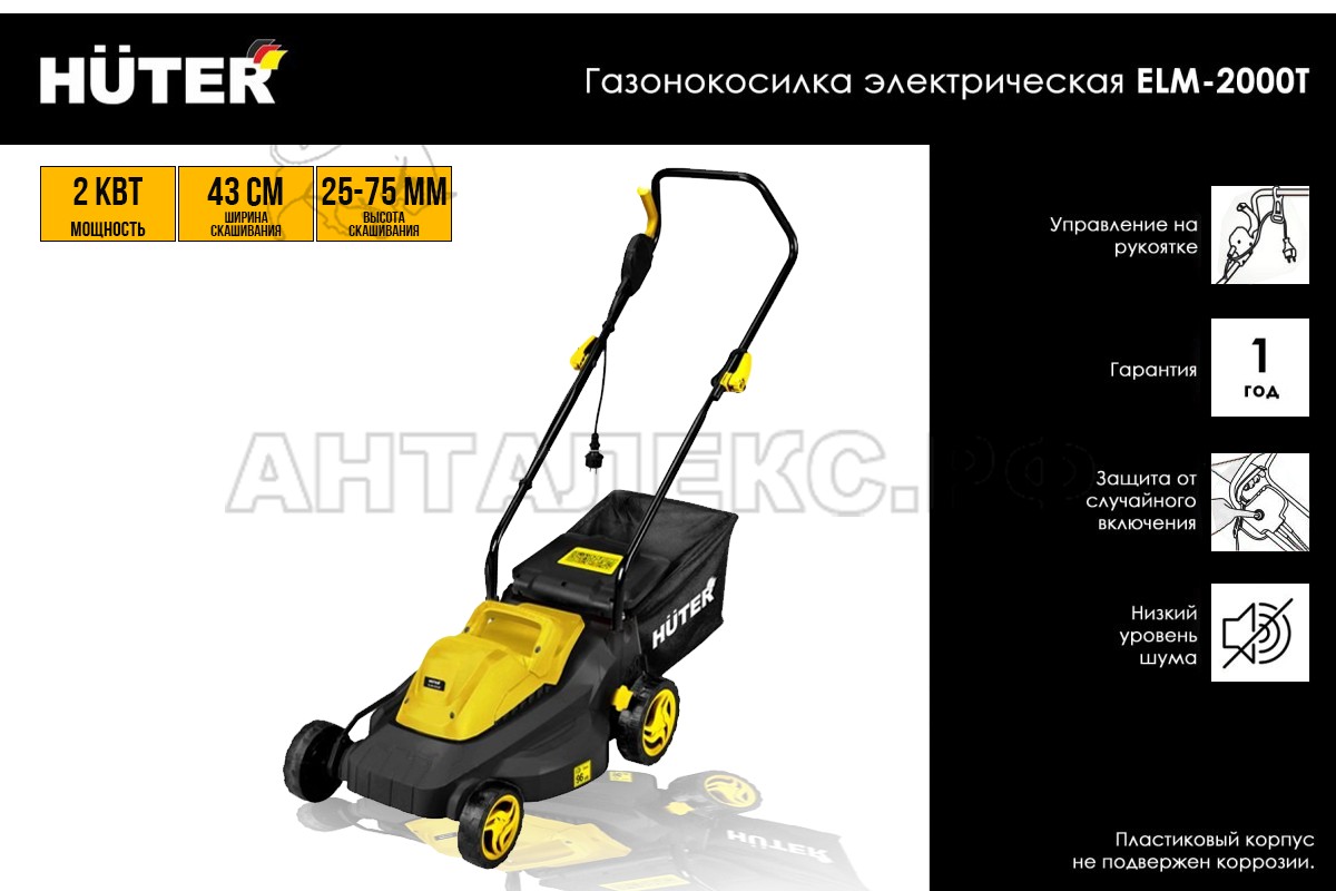 В интернет-магазине Анталекс.рф вы можете купить газонокосилку ELM-2000Т Huter 70/4/8 оптом и в розницу с доставкой по всей территории РФ. Электрическая газонокосилка ELM-2000Т Huter 70/4/8 предназначена для обработки травы на приусадебных участках и дачах, в садах и парках, а также периодической подрезки газонов малой и средней степени плотности.