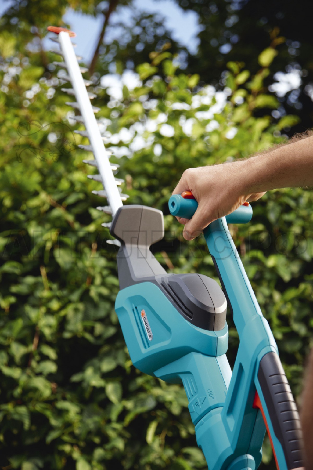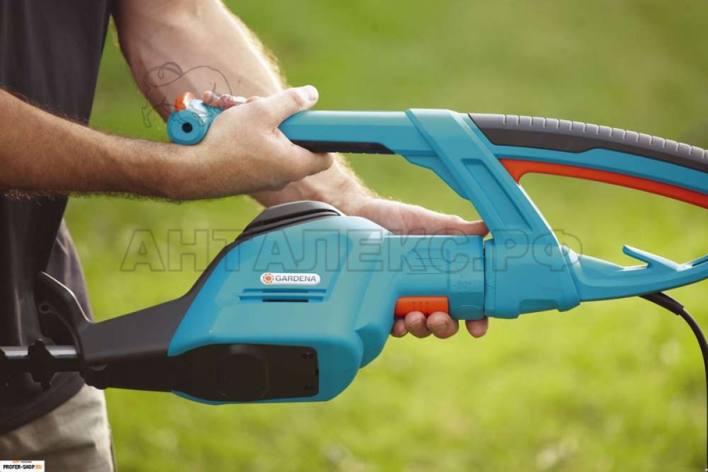 Интернет-магазин Анталекс.рф предлагает купить кусторез Gardena ErgoCut 08875-20.000.00 оптом и в розницу. Дaнный вид электро-секатора или по другому кустореза от шведской фирмы Gardena (подразделение Husqvarna) представляет собой мощный и компактный вид садовой техники, который незаменим при работе по уходу за облагораживанием кустов и кустарников. Оптимизированная геометрия лезвий гарантирует эффективную и чистую обрезку. Инновационный метод работы режущего блока, принцип работы которого заключается в том, что лезвия, способны поворачиваются на 90 градусов. Такой метод позволяет не менять положение рук при работе с кусторезом и обеспечивает абсолютный комфорт независимо от того, с какой стороны изгороди происходит стрижка.
