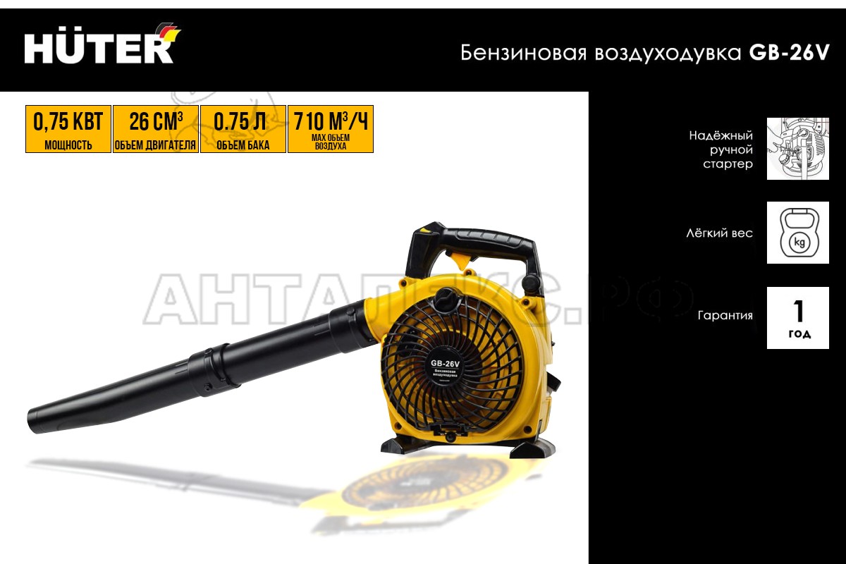 В интернет-магазине Анталекс.рф вы можете купить воздуходувку бензиновую HUTER GB-26V 70/13/15 оптом и в розницу с доставкой по всей территории РФ. Назначение инструмента - сдувание листьев, садового и мелкого строительного мусора в одну кучу. Воздуходувку используют и как пылесос, для сбора мусора в мешок.