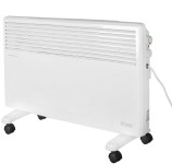 Электрический конвекторный обогреватель работает от электрической сети. Воздух в нём нагревается при помощи ТЭНа, вся поверхность которого покрыта пластинами, для увеличения его площади. Работа устройства полностью бесшумна, так как отсутствует вентилятор. У электрических конвекторных обогревателей имеется масса преимуществ - доступная цена, лёгкость монтажа и установки (существуют и переносные модели), высокий КПД, быстрый нагрев, удобная регулировка необходимой температуры при помощи термостата, бесшумность работы. Из недостатков следует отметить малоэффективность при отоплении очень больших помещений, осушение воздуха и повышенное пылеобразование.