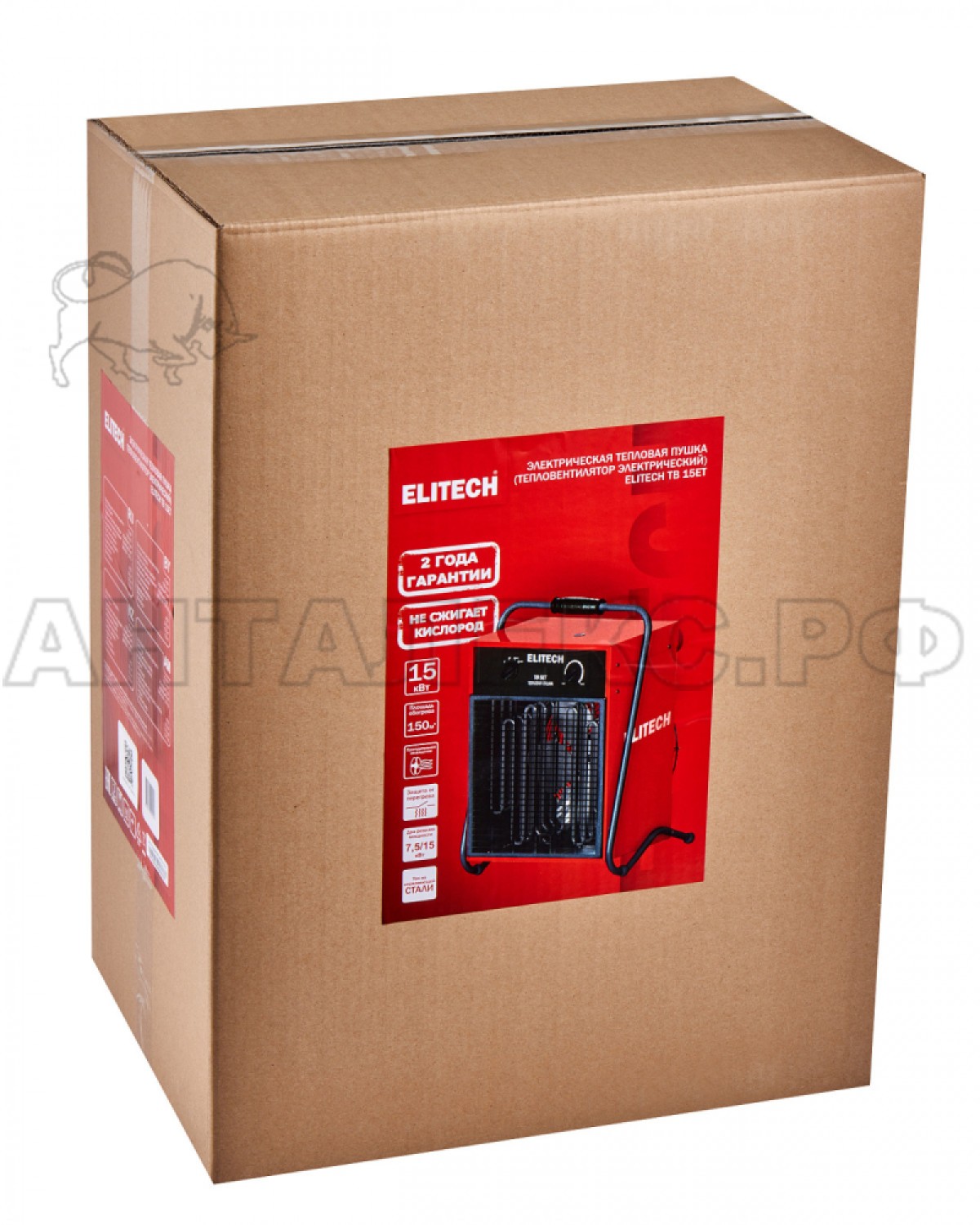 В интернет-магазине Анталекс.рф вы можете купить тепловую пушку Elitech ТВ 15ЕТ оптом и в розницу с доставкой по всей территории РФ. Электрическая тепловая пушка Elitech ТВ 15ЕТ предназначена для максимально быстрого обогрева жилых и нежилых помещений, а также для просушки поверхностей и предметов. Это современная климатическая установка с высокой производительностью и отличными рабочими характеристиками. Конструкция нагревательного элемента (ТЭН) выполнена из нержавеющей стали. Эта модель способна обеспечить быстрый и равномерный прогрев помещений с площадью до 150 кв. метров.