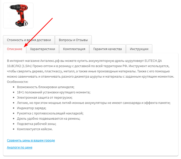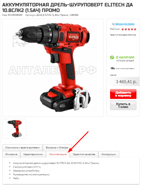 Что входит в комплект товара, Вы можете узнать из вкладки «Комплектация».