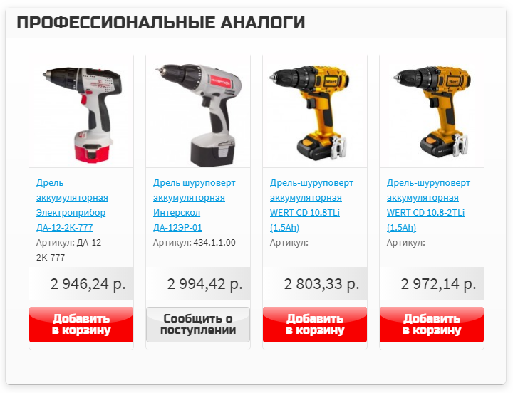 Имеются профессиональные аналоги на товары с другой комплектацией. Эти разделы помогут вам учесть всё при выборе необходимых вам товаров.