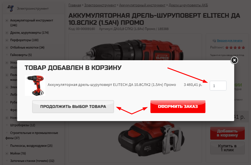 После добавления товара в корзину не забудьте указать количество необходимого товара и переходите к оформлению заказа или продолжите выбор других товаров.