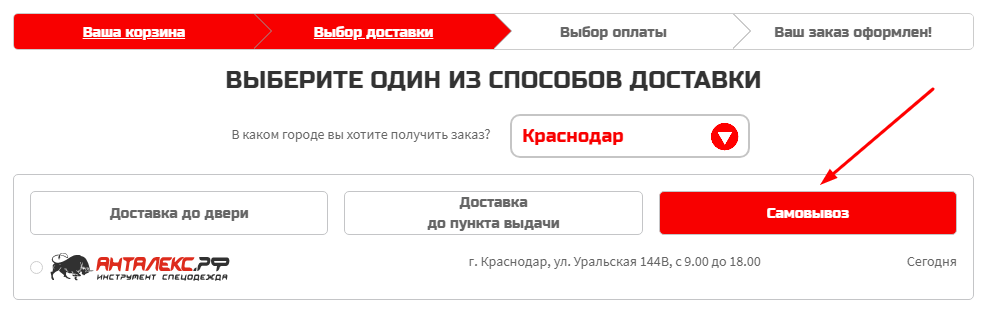 Самовывоз, забрать товар Вы можете самостоятельно из наших физических магазинов в Краснодаре, Ростове-на-Дону, Сочи и Туапсе. Наши магазины работают ежедневно с 9:00 — 18:00 без перерыва.