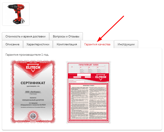 Во вкладке «Гарантия» Вы сможете узнать гарантийный срок, который предоставляет производитель товара.