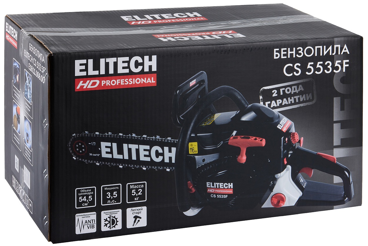 Модели бензопил Elitech HD CS 5535F и CS 5841F созданы на одной платформе, поэтому многие запасные части для профессиональных бензопил унифицированы. Проблемы с сервисным обслуживанием и ремонтом благодаря этому решаются более оперативно.
