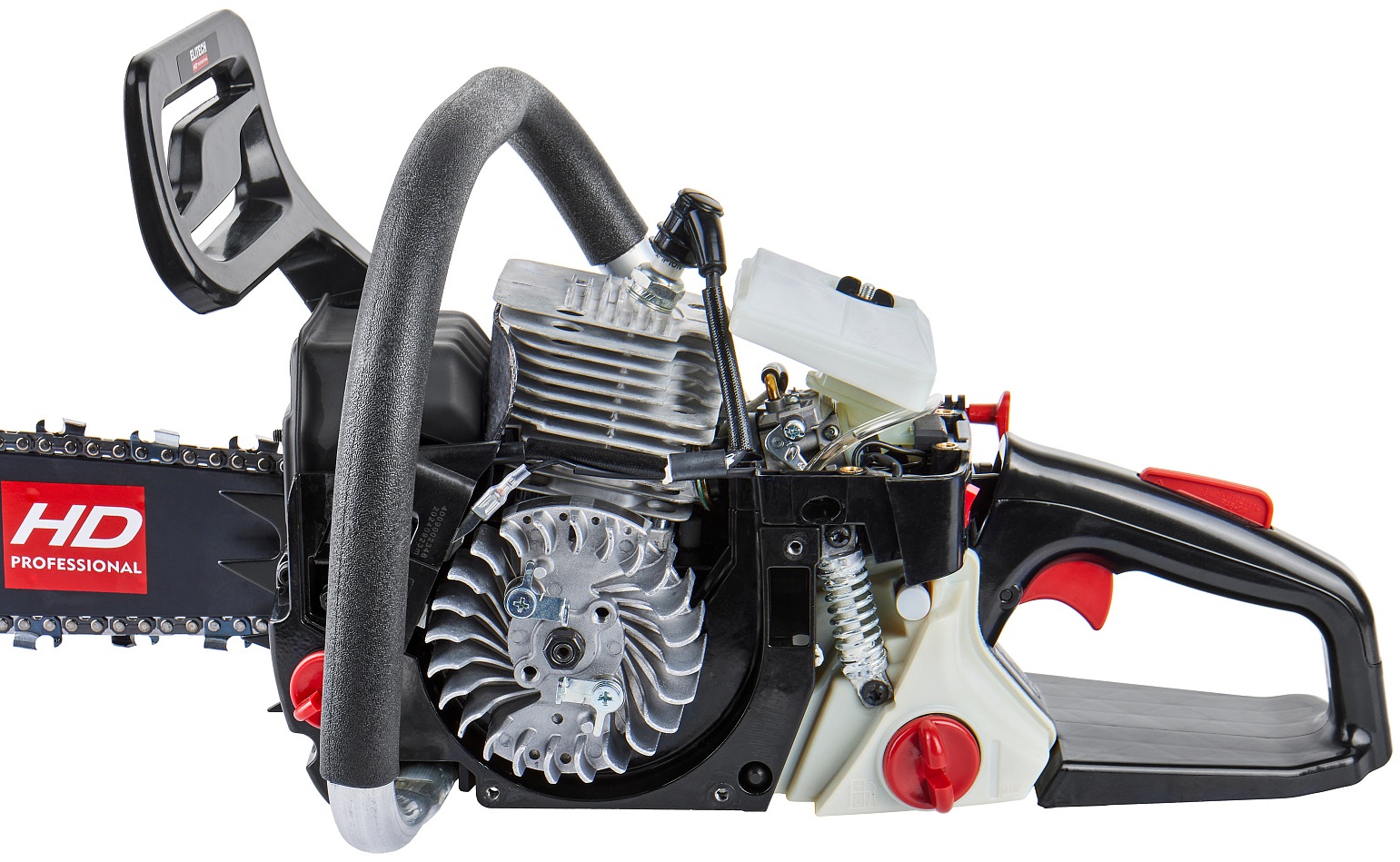 При разработке двигателей бензопил использовались новые технологии. У бензопил HD Professional картер и посадочные места нагреваются на 50-70 град. Цельсия меньше, чем у аналогов других производителей.