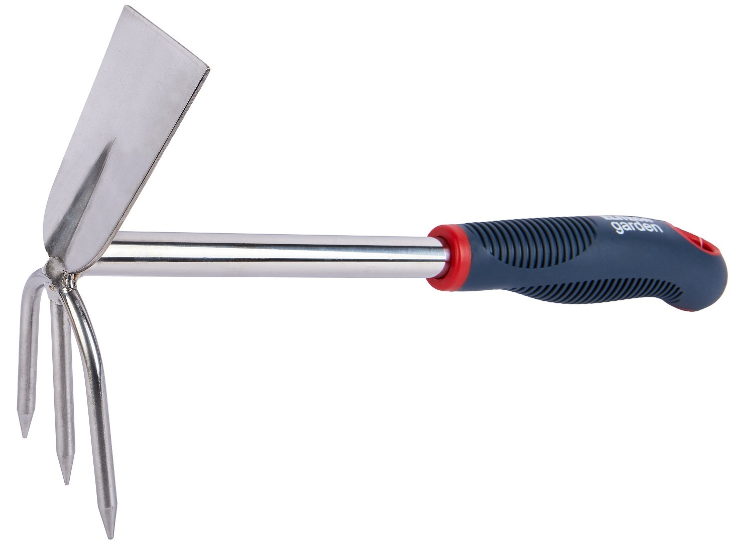 Elitech предлагает ручной инструмент 2в1: тяпка и вилка вместе, который подходит для окучивания и прополки.