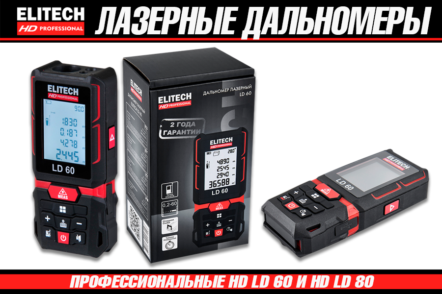 Популярный в России бренд Elitech в 2025 году выпустил несколько моделей лазерных дальномеров, относящихся к серии HD Professional.