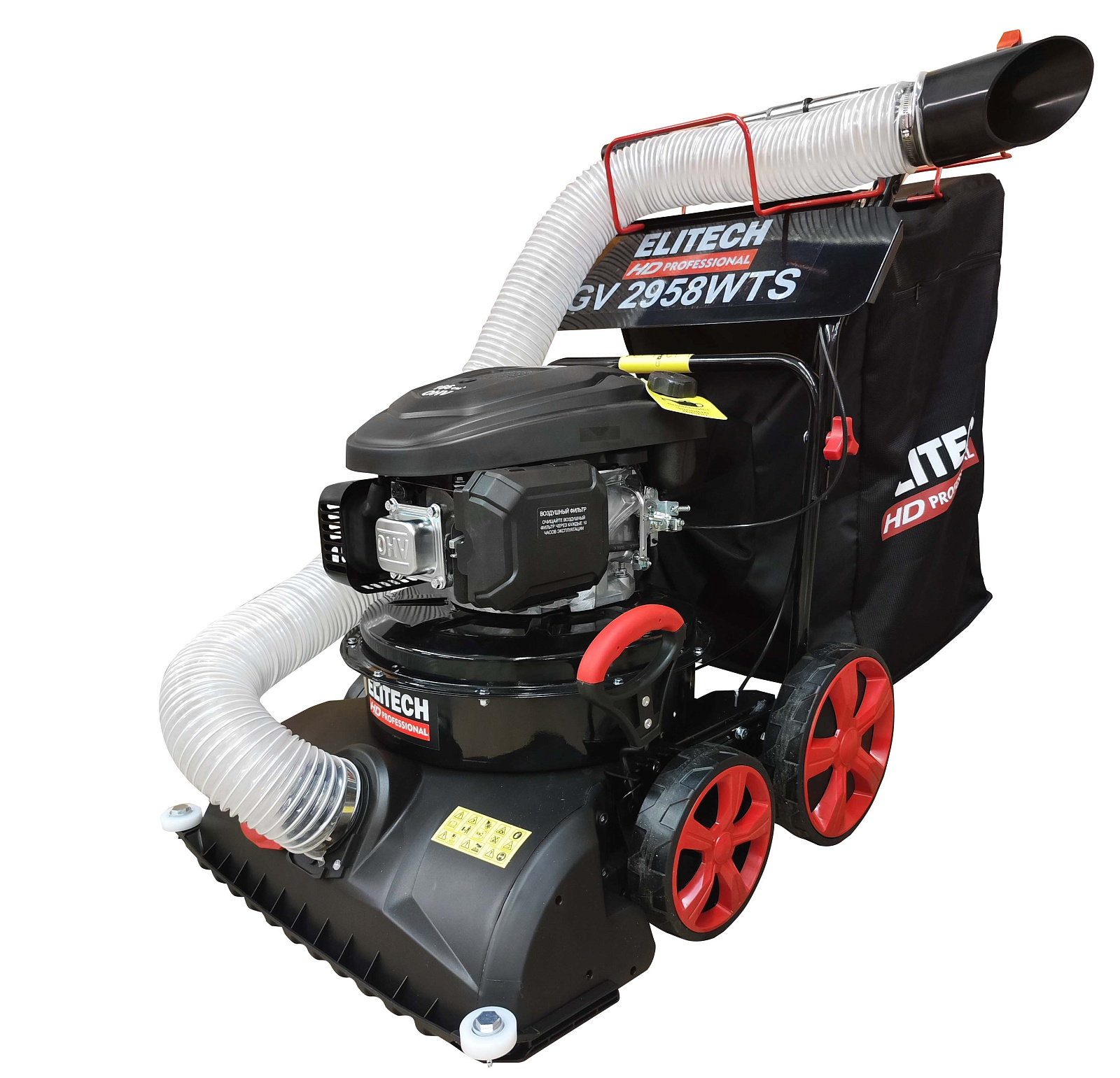 Для коммерческого использования подойдет колёсный садовый пылесос ELITECH GV 2958WTS.