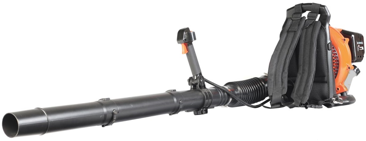 Уборка происходит благодаря мощному потоку воздуха, выходящему из трубы. Мощности потока хватает для очистки территории от листвы и нетяжелого мусора.