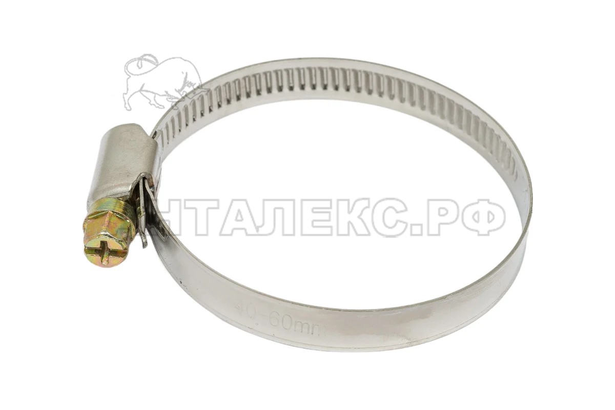 Червячный стальной хомут диаметром 48-60 мм (артикул 47-4-060) применяется для соединения труб, патрубков и шлангов.