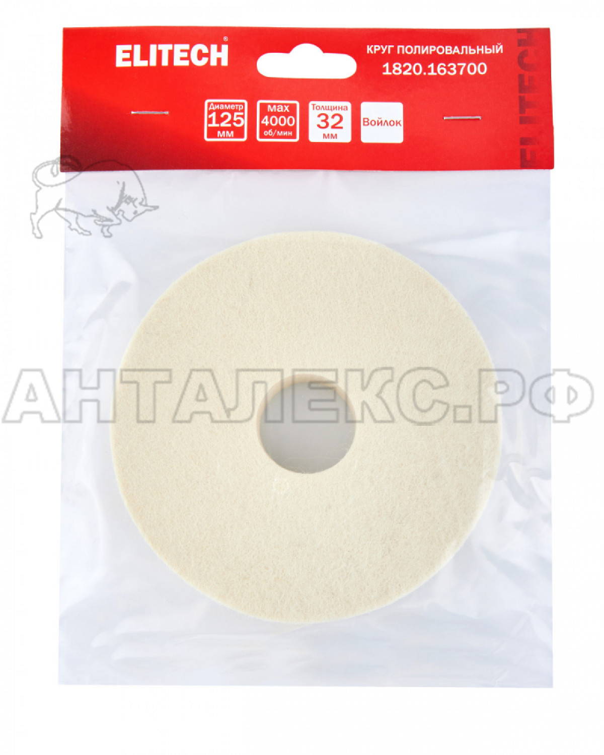 В интернет-магазине Анталекс.рф можно купить круг полировальный Elitech, 125x20x32 мм, 1820.163700, натуральный войлок, по низкой цене, в розницу и оптом, с доставкой по России.
