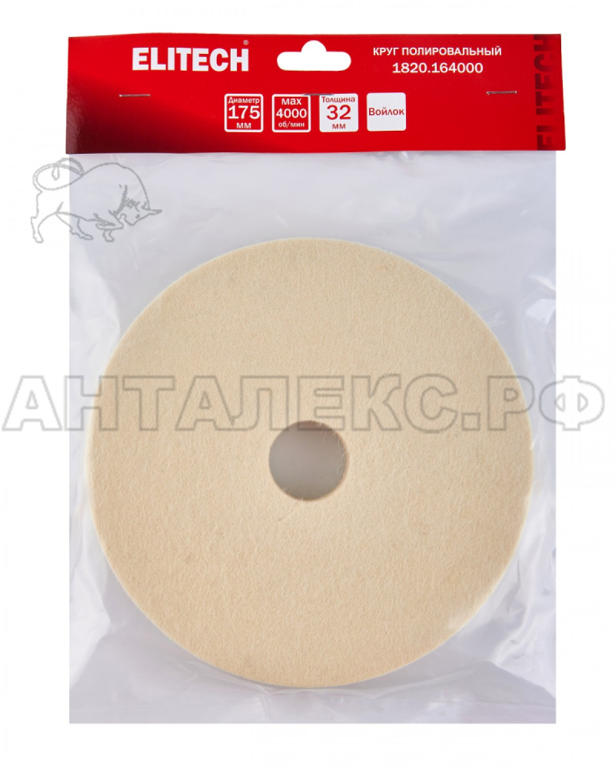Диск полировальный ELITECH 1820.164000, 175х20х32 мм, натуральный войлок - 1 шт.