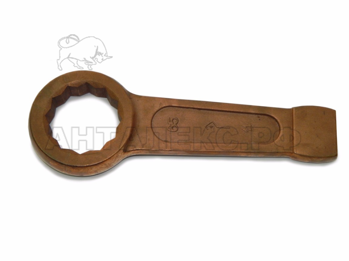 В интернет-магазине Анталекс.рф вы можете купить ключ гаечный кольцевой ударный КГКУ 60 Камышинского завода слесарно-монтажных инструментов искробезопасный, оптом и в розницу. Ключи представляют собой мощное кольцо с внутренним 12-гранным профилем монтажного размера с усиленной короткой профилированной рукояткой на которой предусмотрена площадка для ударного контакта с молотком или кувалдой. Гаечный накидной ударный ключ КГКУ 60 мм, необходим для обслуживания оборудования в помещениях с взрыво- и пожароопасными условиями эксплуатации. Изделие оснащено кольцевым зевом, который имеет размер 60 мм. Ключ изготовлен из неискрящего медного сплава АКН, стойкого к коррозии во многих средах.