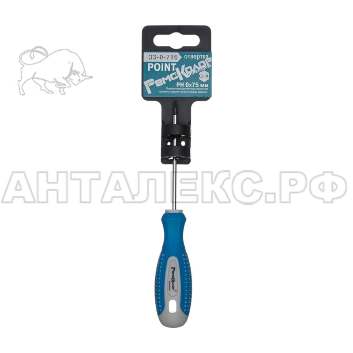 Отвертка RemoColor серии "Point" крестообразный шлиц РН №0 х 75 мм - 1 шт.