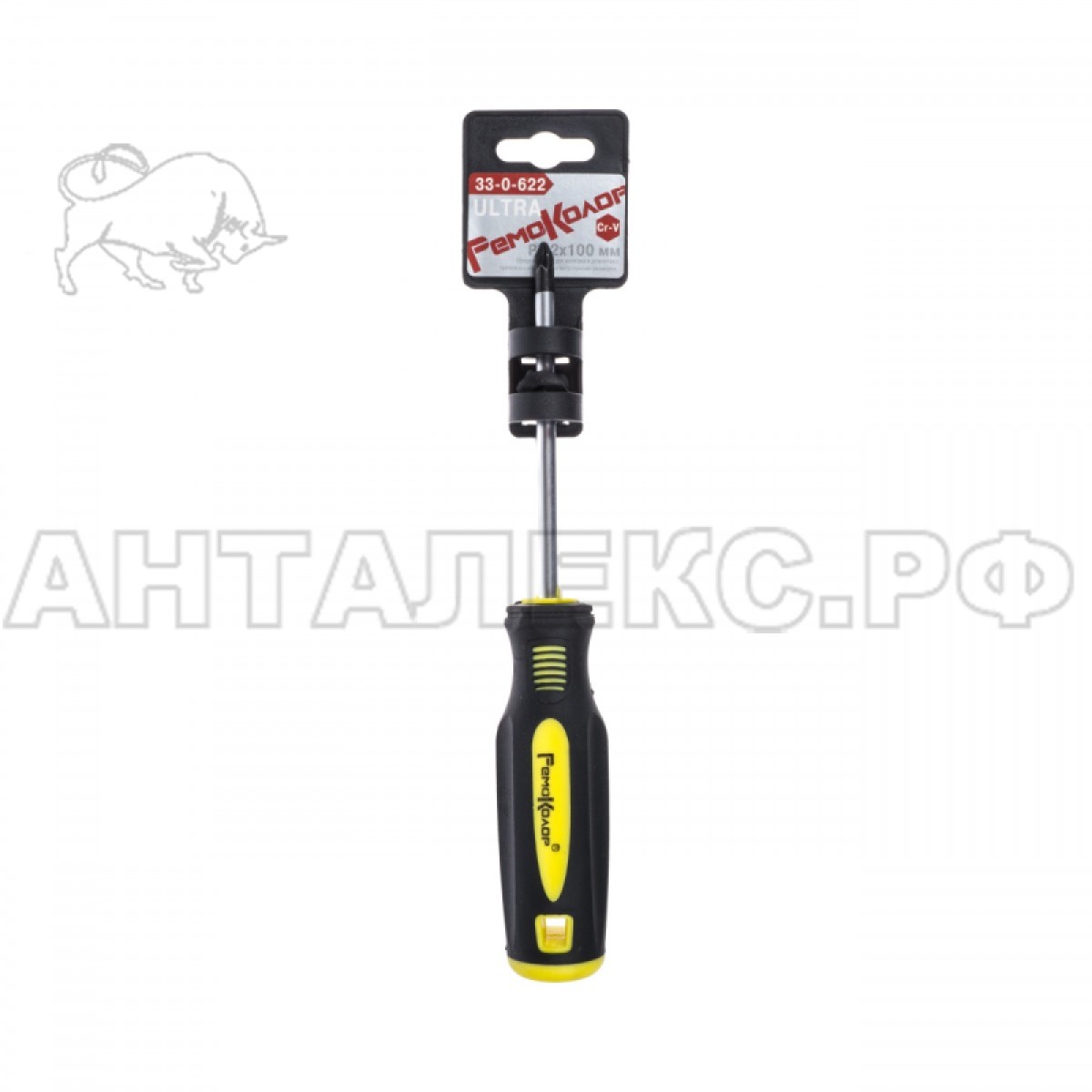 Отвертка RemoColor серии "ULTRA" крестообразный шлиц РZ №2 х 100 мм - 1 шт.